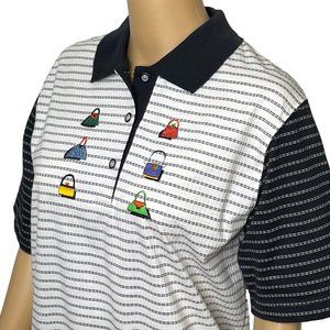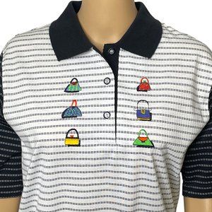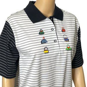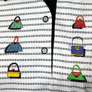 VERY RARE Vintage Blast Petites Women's S PS Blouse Short Sleeve Embroidered Purses Polo Shirt