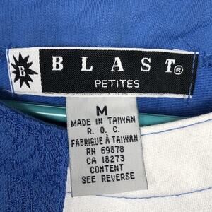 Vintage Blast Sz Petite Medium Blue White Flower Embroidered Sweater Blouse Top