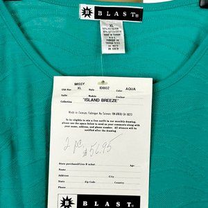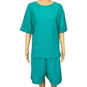 Vintage Blast Womens XL 2-Piece Aqua Turquoise Short Sleeve Blouse Shorts Outfit