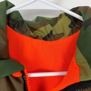 Condition: Orange lining has a lot of pilling and there are some marks/stains on the camo side. No holes. Zipper runs a little tight but works well. Please see all photos for condition.