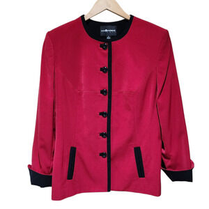 Vintage Blazer Jacket Collarless Red Black Trim Size 16