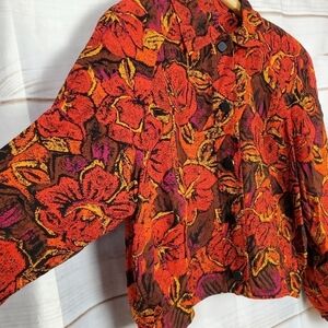 Vintage 90 Breckenridge Red Floral Short Button Blazer Jacket Size 10
