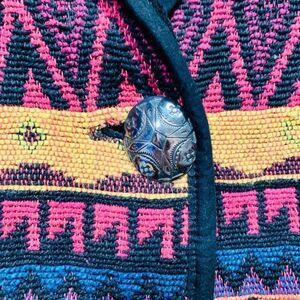 Vintage Southwestern Aztec Cowboy Ranch Rancher Ranchwear Yellowstone Rodeo Stockshow Horse Girl Rural Farm Pattern Boxy Fit Cropped Boho Bohemian Shawl Collar Earthy Colors Statement Piece Layering