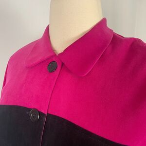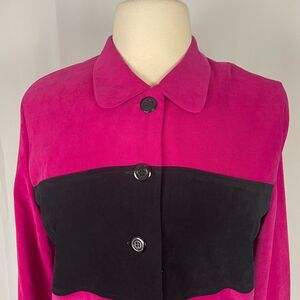 Vintage Blazer Jacket Womens Size 14 Hot Pink Black Stripe Cropped Suede 90s Y2K