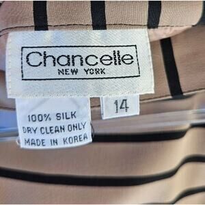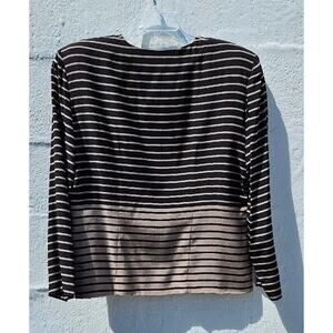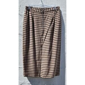 Vintage Blazer Skirt Set Womens 14 Tan Silk Black Striped Jacket Top Retro 80s