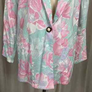 Vintage Blazer Womens Size Small Floral Pink Blue Pastel Spring Boyfriend 90s