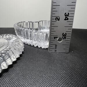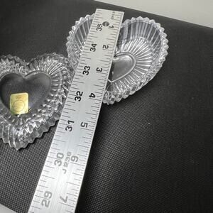 Exquisite German Bleikristall lead crystal heart dishes featuring authentic over 24% PbO content for superior clarity and brilliance. This stunning set includes multiple heart-shaped pieces with distinctive radial fluted edges that catch and reflect light beautifully. The precise German craftsmanship creates prismatic sparkles that dance across surfaces. Each piece bears the original gold foil authenticity label confirming genuine lead crystal quality. Perfect for romantic occasions, jewelry storage, candy dishes, or elegant home decor. The timeless heart shape and crystal clarity make these versatile pieces ideal for weddings, anniversaries, or adding vintage European charm to any space. Excellent condition with no chips or cracks. A must-have for crystal collectors or anyone seeking authentic German quality glassware.