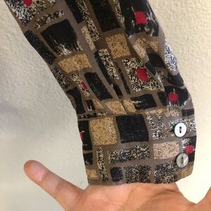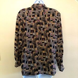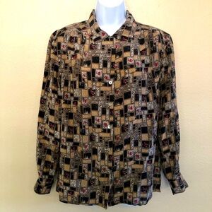Vintage Bleyle Woman’s Silk Geometric Buttons Front Long Sleeves Blouse Size 14