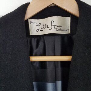 Vintage Lilli Ann San Francisco Paris Blin + Blin Fabulous French Woolen 1950s Swing Coat Black Pockets S/M