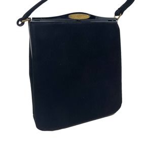 Vintage Block Black Suede Top Handle Shoulder Bag Square Opening Metal Clasp