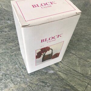 Stunning vintage Block Crystal “Elizabeth” handbag-style vase. Expertly hand-cut, hand-polished, and mouth-blown, this lead-free crystal piece is a collector’s gem.