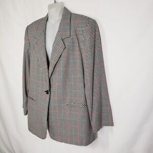 Vintage Block Island Petites Marina Pappas Blazer Size 12 Houndstooth 1 Button
