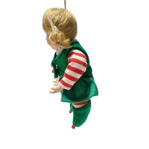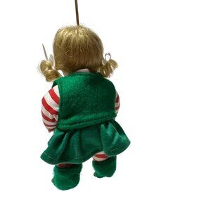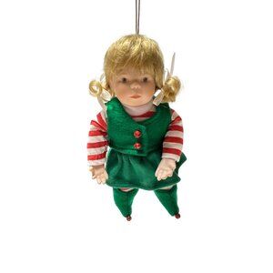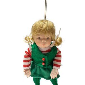 Vintage Blonde Porcelain Christmas Elf Doll Ornament With Wish List Scroll