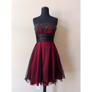 Vintage Blondie Nites Prom Mini Dress 3 Red Black Mesh Embroidered Sequin Y2K