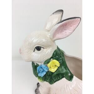 Vintage Bloom Rite Rabbit Bunny with Flowers Hand Painted Planter New Baby