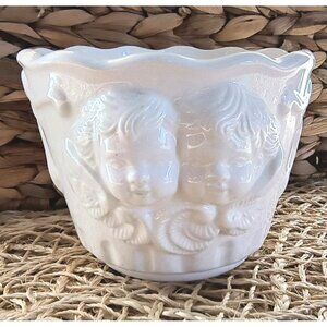 Vintage Bloom-Rite Cherub Planter, White Ceramic Cherubs, GUC