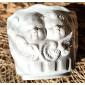 Vintage Bloom-Rite Cherub Planter, White Ceramic Cherubs, GUC. 3.5"T x 4.5"W Rim x 2.75"Base. **Planter has some crazing in 2 areas; PLEASE SEE PICTURES** NO Chips, Cracks or Scratches.
