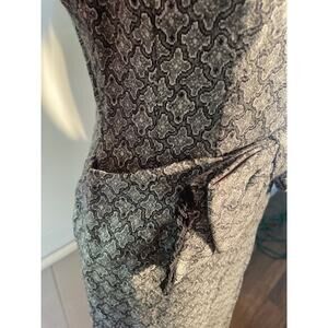 Beautiful vintage Bloomfield by Connie Chase dress circa 1950's. It has 3/4 sleeves, wool blend, fully lined, sheath dress. It has a bow at the waist and 2 front pockets.