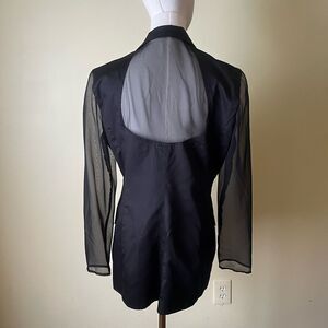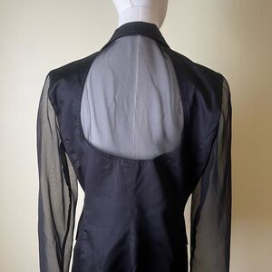 vintage Bloomingdale's blazer sheer sleeve jacket USA made women's blazer black double breasted coat 80s 90s power blazer sheer panel blazer gold button blazer tailored evening jacket vintage career wear classic black blazer timeless dark academia sophisticated iconic business casual