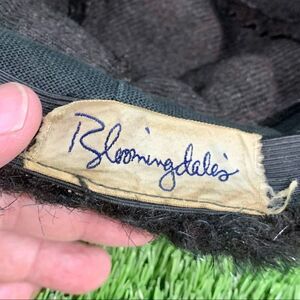 Great Vintage Bloomingdales Fur Hat. This hat is at least as old as the 1960’s or before. Black fur hat. No damage. Tag is stained from age. From smoke free pet free home. See pictures of actual item to confirm condition. One size. Very unique.
