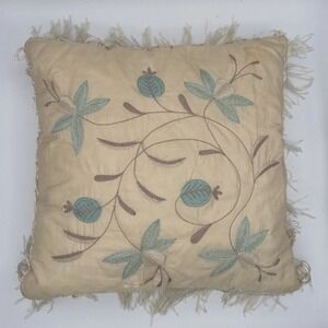 Vintage Bloomingdale's Silk Embroidered Pillow Cover India Floral Fringe 16"