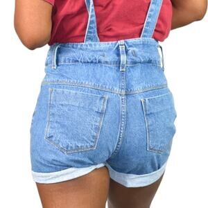 Vintage Blossom Jeans Bib Overall Blue Denim Shorts 80s Suspender Cuffed Size XS