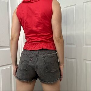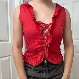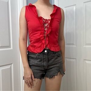 Vintage Blouse Lace Up Ruffle Red Coquette Sexy Dainty Bimbo Size Small