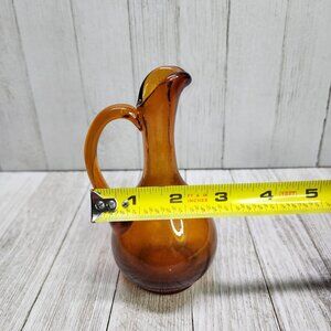 Vintage Blown Amber Art Glass Pitcher Small 5.75'' Tall
