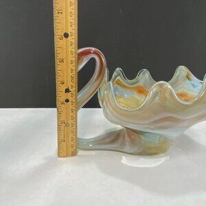 Vintage Blown Art Glass Swan Bowl Sooner Style Orange White