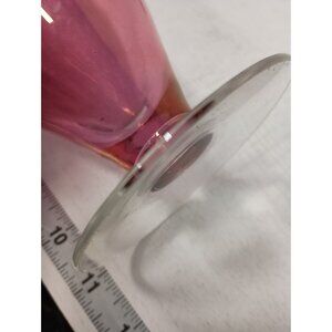 Vintage Blown Cranberry Art Glass Vase Etched Floral Iridescent Flash Footed