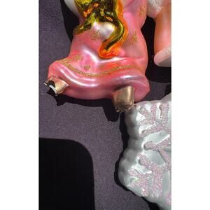 Vintage Blown Glass Angel & Snowflake Ornaments Gold Lot Of 3 -OR3