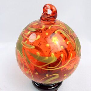 Vintage Blown Glass Christmas Tree Ornament Red and Gold Hand Painted Sphere