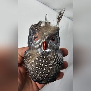 Vintage Blown Glass OWL 5" Christmas Ornament Brown Gradient Glitter Feathers
