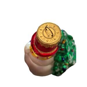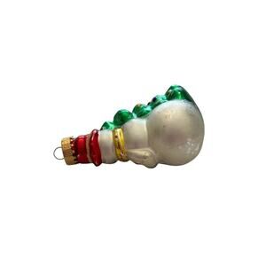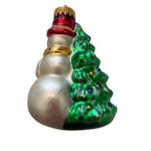 Vintage Blown Glass Snowman next to Christmas Tree Ornament 4”