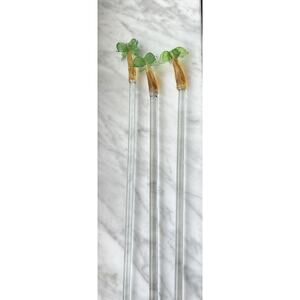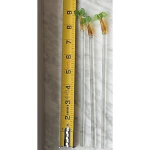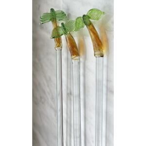 Vintage Blown Glass Tropical Palm Tree Swizzle Sticks Set Of 3