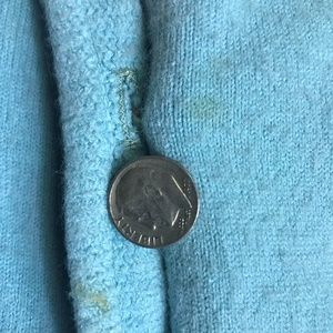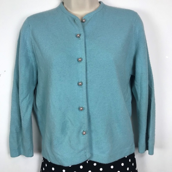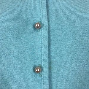 Great vintage cardigan in a glorious blue color. Has original "pearl" buttons. Some pilling and a few stains (see photo mostly under button placket). Still a great vintage piece.