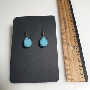 These handcrafted turquoise drop earrings feature a teardrop design with copper hooks for a simple yet elegant aesthetic. Versatile for various occasions and stylish accessory enthusiasts.