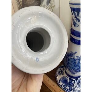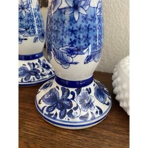 Vintage Blue And White Taper Candle Holder Set Porcelain Country Cottage Floral