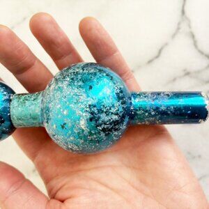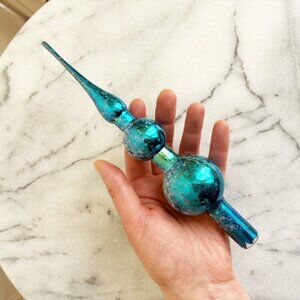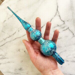 Vintage Blue Aqua 8.5" Glass Christmas Tree Topper Flocking Feather Tree Small