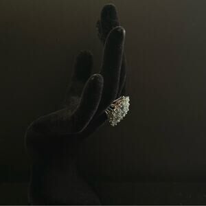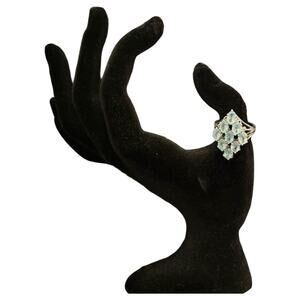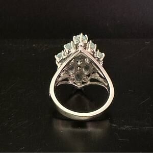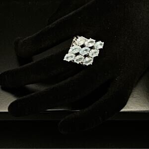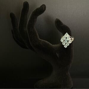 Vintage Blue Aquamarine Jewel Diamond Shaped Ring With Sterling Silver Band
