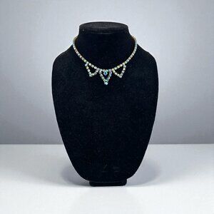 Vintage Blue Aurora Borealis Rhinestone Necklace Triple Triangle Necklace