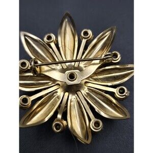 This vintage blue Aurora Borealis rhinestone brooch pin in goldtone is a stunning piece of jewelry that exudes elegance and charm. The use of Aurora brand rhinestones adds a touch of luxury and sophistication to the design, while the blue color of the main stones adds a pop of brightness and vibrancy. Perfect for adding a touch of retro glamour to any outfit, this brooch pin is a timeless and classic accessory that can be worn on a lapel, collar, or even as a statement piece on a bag or hat.