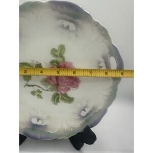 Vintage Blue Bavaria Edwardian Gremany Scalloped Two Handle Cake Plate Rose MCM