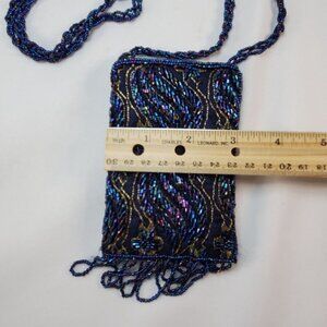 Vintage Blue Beaded Evening Bag With Fringe & Strap