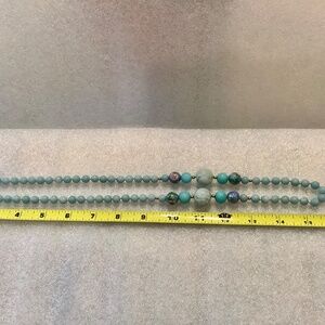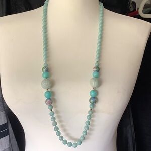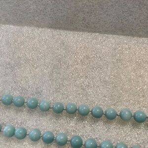 quartz or agate in a robins egg blue, all hand knotted. There are small