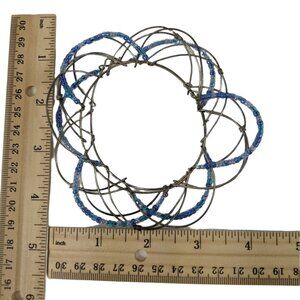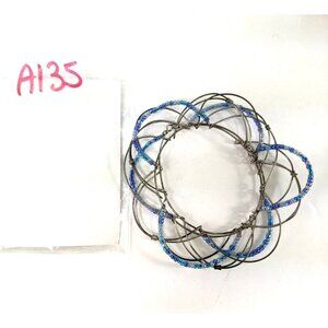 This bangles bracelet features a delicate combination of blue beads and wire. Their intricate design adds a touch of timeless elegance to any jewelry collection. With their charming craftsmanship, these bangles evoke a sense of nostalgia and sophistication.