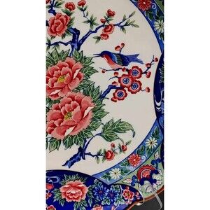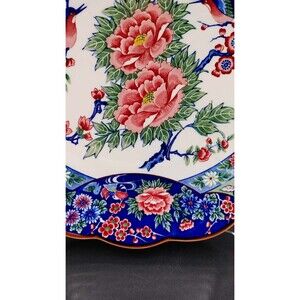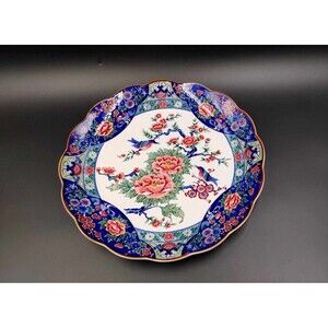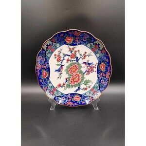 Vintage Hirano Blue Bird and Floral Charger Plate with Scalloped Edges. Measures approx 12.5". In Good condition with no chips, cracks or breaks. Colors are good with minimal to no fading. Made in Japan by Hirano China
