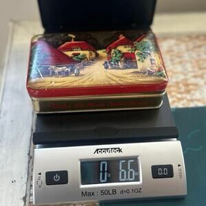 Vintage Blue Bird Toffee tin from Harry Vincent Ltd. (England) with a charming countryside scene. Light wear consistent with age. Comes filled with assorted crochet thread balls in soft pastel and muted tones. Perfect for display, storage, or crafting.