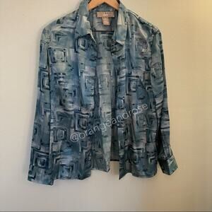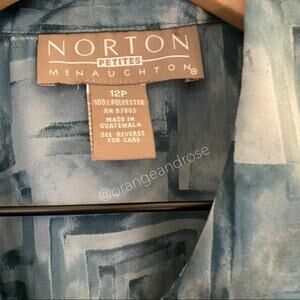 so in love with this vintage geometric blue silky smooth button down blouse from vintage brand Norton McNaughton