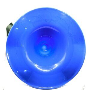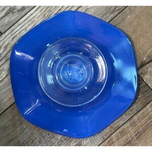 Vintage Blue Blown Glass Pedestal Compote Bowl With Clear Stem
